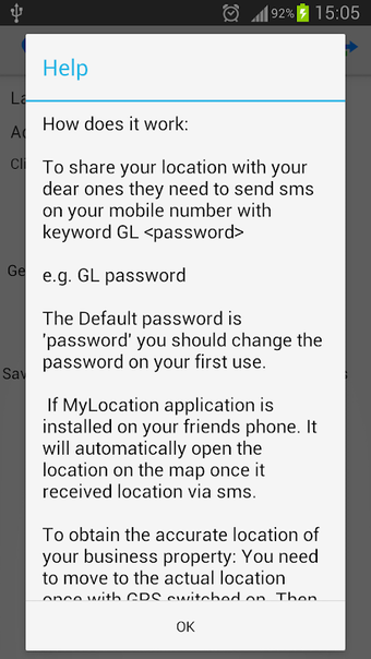 Saat aplikasi pertama kali dibuka, Anda akan dimintai izin untuk menggunakan lokasi Anda dan akses ke internet. Anda akan dapat melihat lokasi di peta dan juga alamat lokasi Anda.